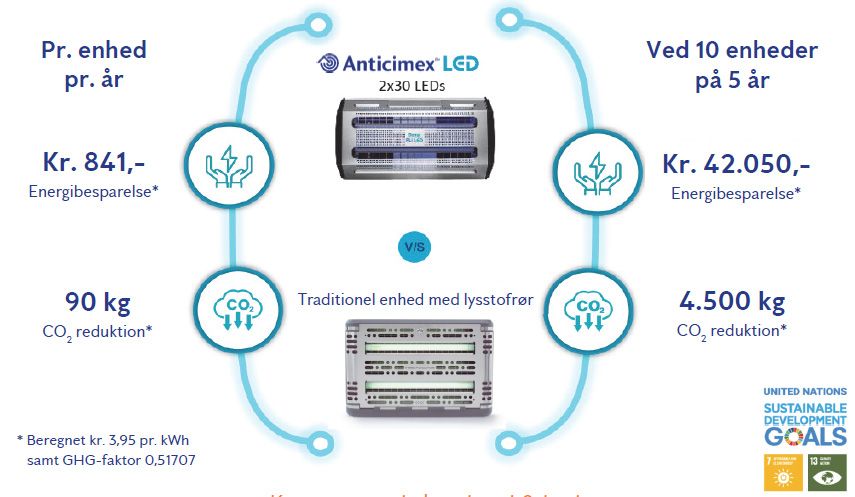 Vores insektdetektorer har den nyeste bæredygtige teknologi og her kan du se, hvor stor en besparelse du kan opnå på både energi og CO2-regnskabet:
